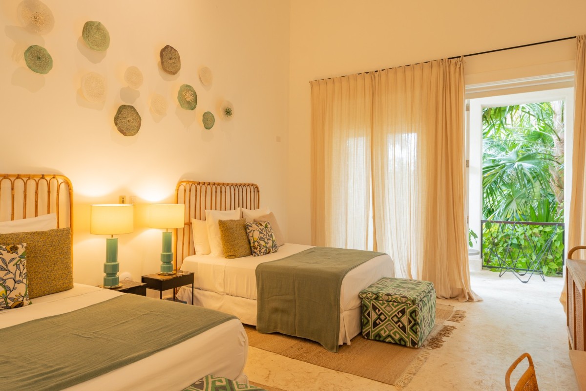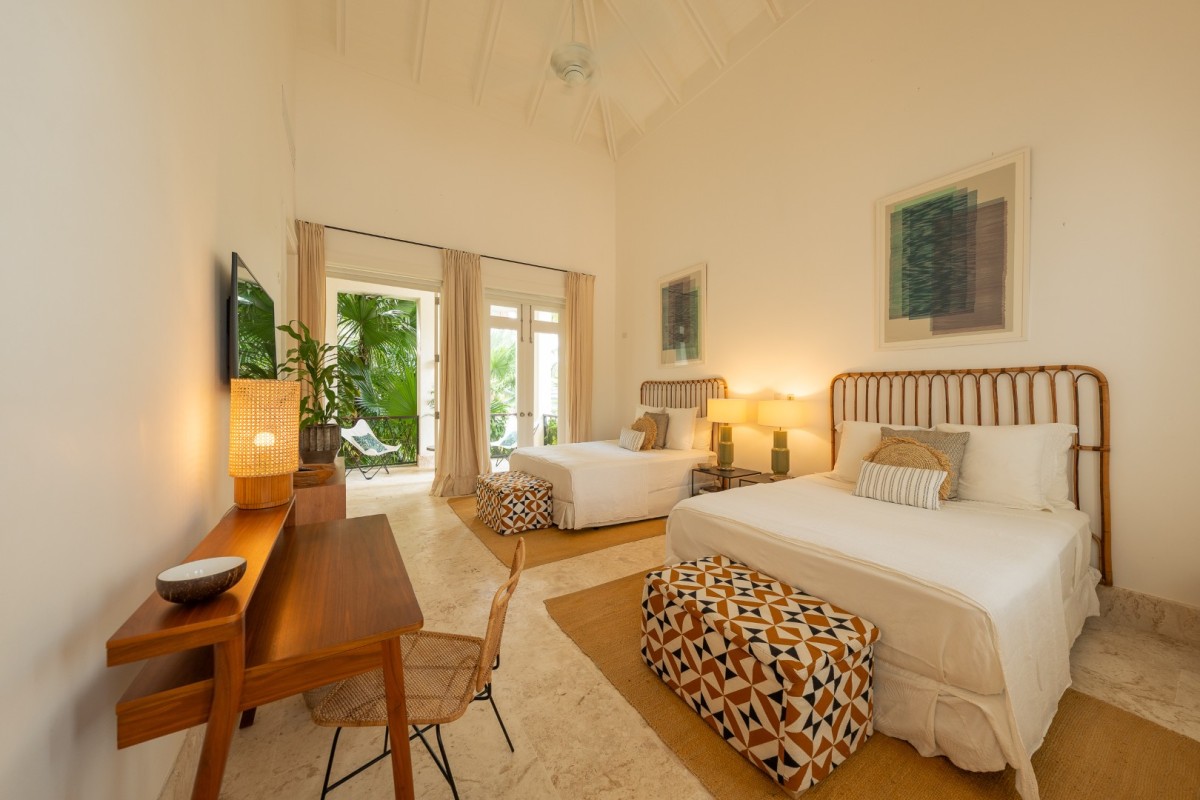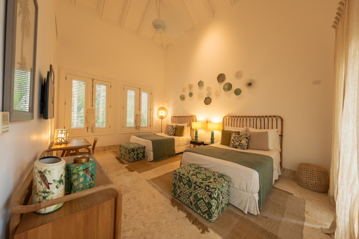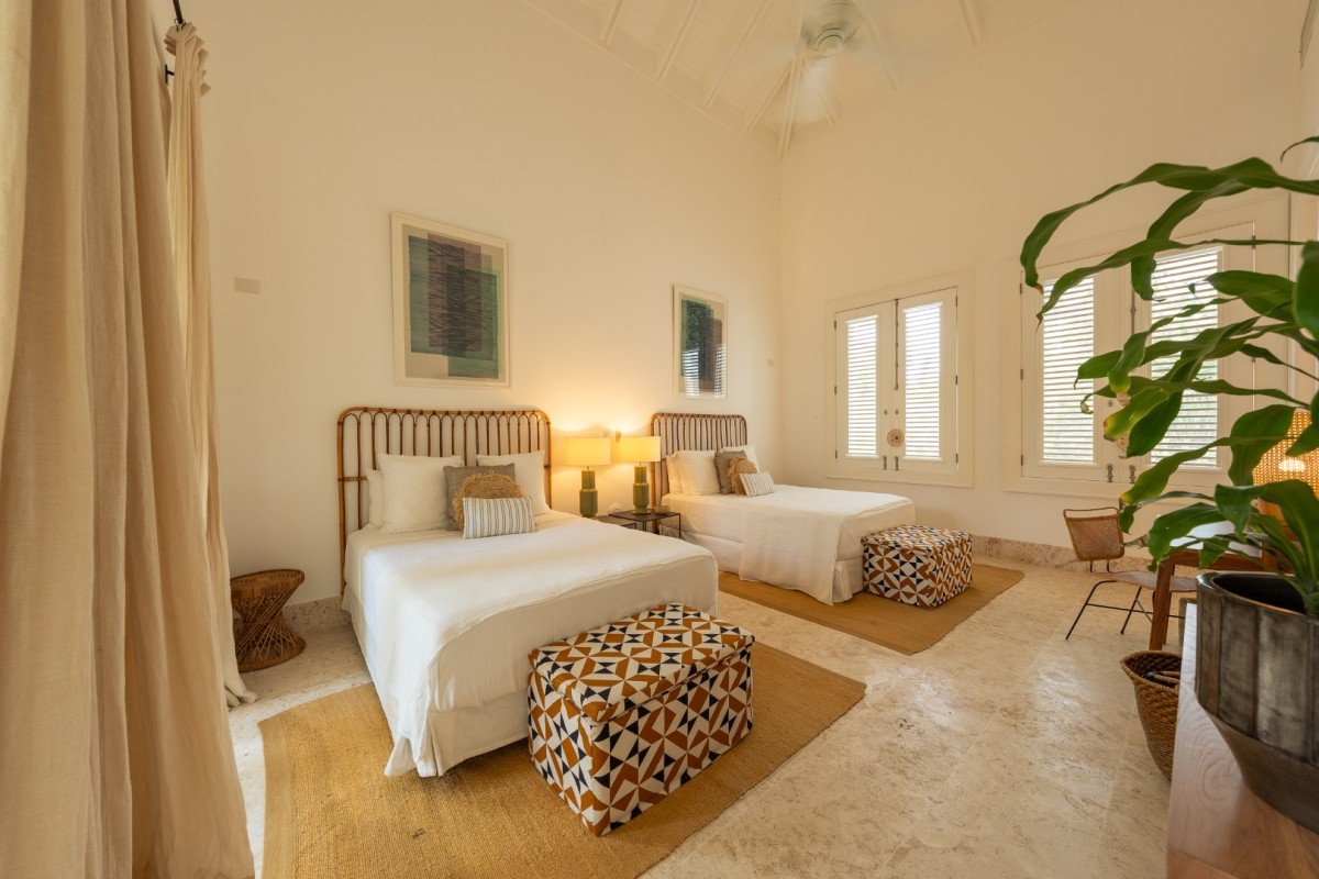 Bedroom 5: Bedroom with two queen-size beds, A/C, TV, safe and en-suite bathroom with shower, vanity and WC. 2 guests maximum.