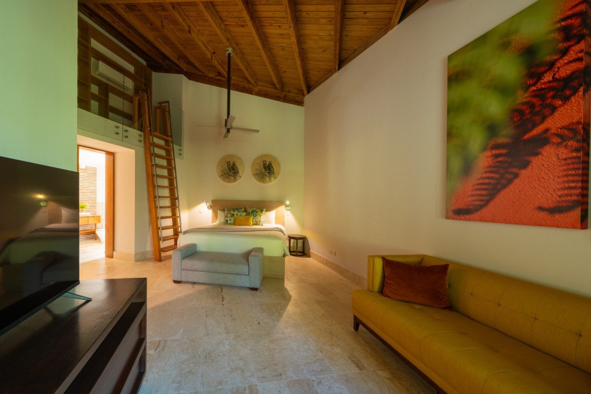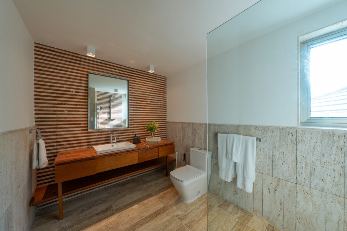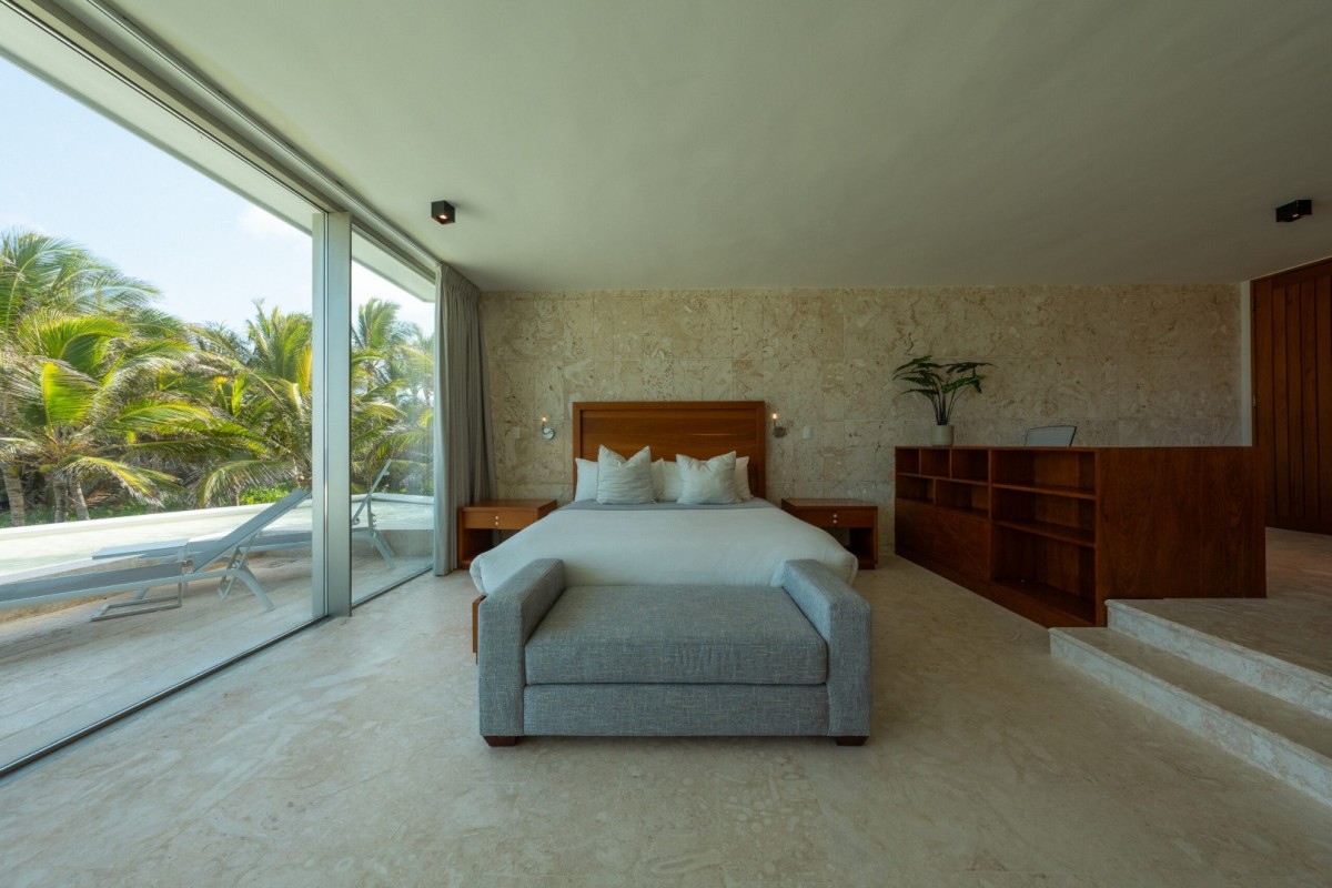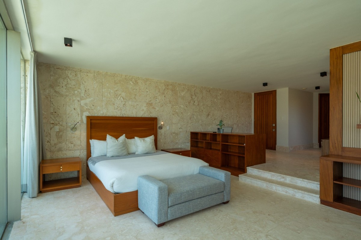Bedroom 5: First floor bedroom with a king-size bed, A/C, WiFi, TV, walk-in closet, private terrace, and en-suite bathroom with shower, double vanity and WC. 2 guests maximum