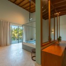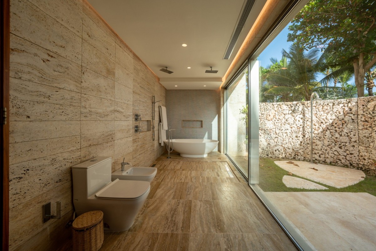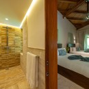 Bedroom 6: Ground floor bedroom with a king-size bed, sitting area, A/C, WiFi, TV, walk-in closet, private patio, and en-suite bathroom with bathtub, outdoor shower, double vanity, bidet and WC. 2 guests maximum