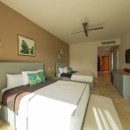 Bedroom 3: Ground floor bedroom with two double beds, A/C, WiFi, TV, and en-suite bathroom with shower, vanity and WC. 2 guests maximum
