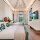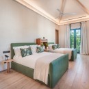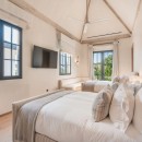Bedroom 5: Second floor bedroom with two queen-size beds, ceiling fan, A/C, TV, WiFi, and en-suite bathroom with shower, double vanity and WC. 2 guests maximum.
