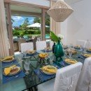 The creamy marble of the floors in the main living area seamlessly flows to the outdoor spaces making the home seem even larger than its already palatial size. Indoors is just as impressive as the outdoors. The modern furniture and decor give the space a chic contemporary feel, but there are still splashed of blue that matches the Caribbean waters nearby. The bedrooms are equipped with king-sized beds in rooms one and two. Rooms three and four both have two double beds. Each room has access to an ensuite, and all but one have direct terrace or balcony access.