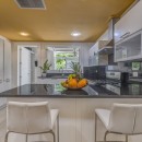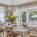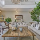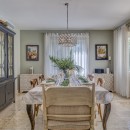 The design of the building and the interiors places the emphasis on the natural light. A pale palette and furnishings made of natural materials ensure that the space has a very casual and welcoming feel. The large shared living room opens to the covered terrace, but is also part of the open floor plan that leads into the formal dining room. From there, you can reach the modern, gourmet kitchen and yet another gathering space with a media center.