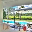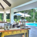 The glistening waters of the private pool will be calling to you from the moment you wake in the morning. The cool cream-colored marble surrounding the pool includes plenty of areas to sit and enjoy a sip of wine or a fruity cocktail. There is a dining area on the verandah for enjoying your meals al fresco. Plus the many sitting areas will keep you outdoors most of the day.