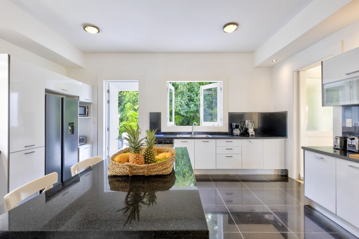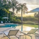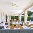 Sun beds and lounges make this the perfect place for star gazing, afternoon drinks, or relaxing dips. Step beneath the pillared portico and find luxurious lounging on the banquette, or dine in elegance at the al fresco dining area. Step inside and you will feel both soothed and inspired by the generous proportions of the great room with its coolly casual décor that creates an irresistible lounge, comfortable family room, elegant dining room, and where the professional quality kitchen is available.