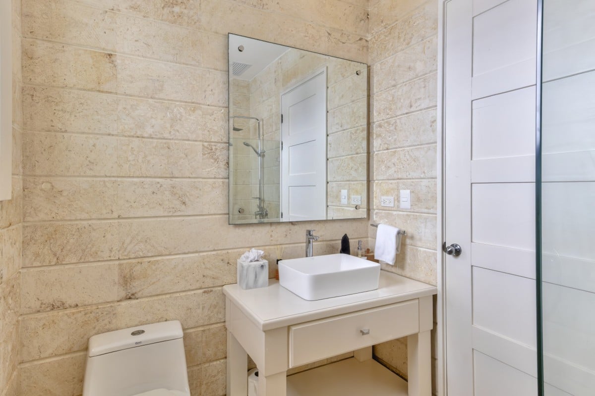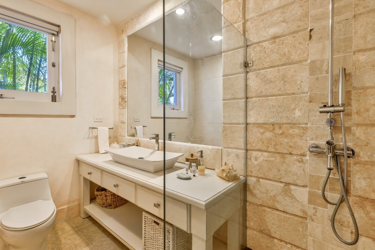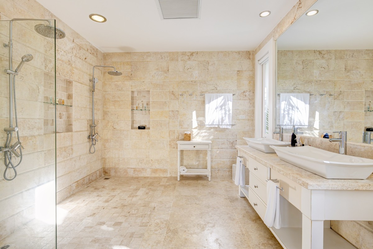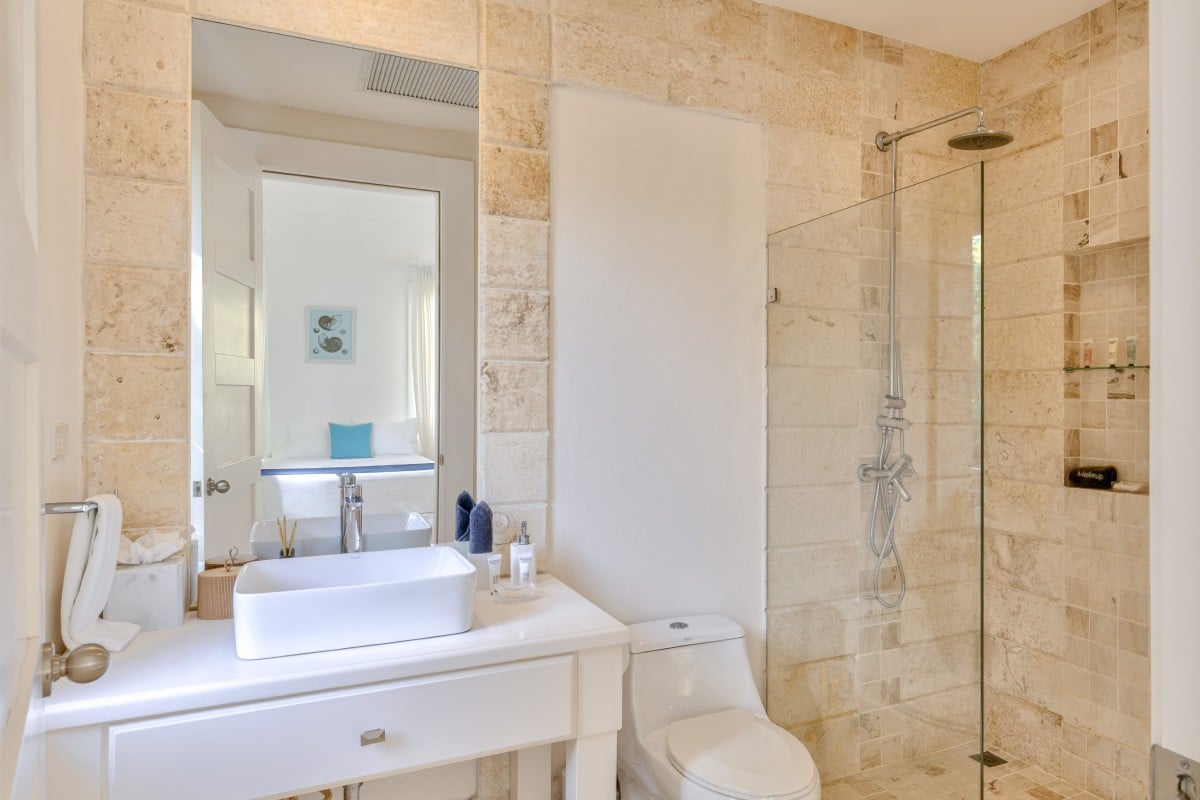 The bedrooms are an ideal match to the shared living spaces, and are found on upper and lower levels. The master suite is on the second floor and has a king bed, terrace access and large, private bath. The remaining suites feature a single king or two queen beds, en-suite baths, and garden or upper terrace access.