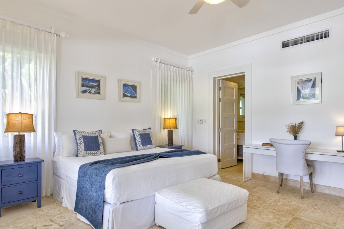 Bedroom 4: Ground floor bedroom with a king-size bed, A/C, ceiling fan, TV and en-suite bathroom with shower, vanity and wc. 2 guests maximum.
