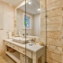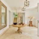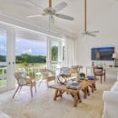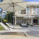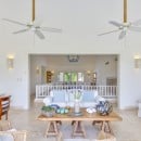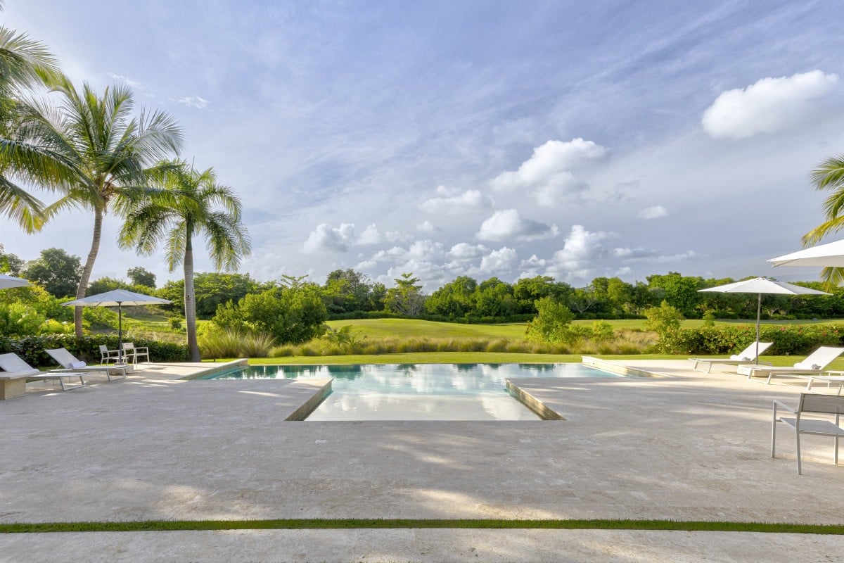 This five-bedroom property features some of the most straightforward and clean lines of any of the luxury villas. Yet, it is in its simplicity where its greatness is found. Spacious rooms, pale and airy palettes, and amazingly effective décor makes each room and living space a relaxing retreat. Nowhere is this more apparent than the pool area. A uniquely shaped pool, it looks out over the meadows that lead to the golf course and is framed by a lovely stone surround.