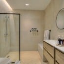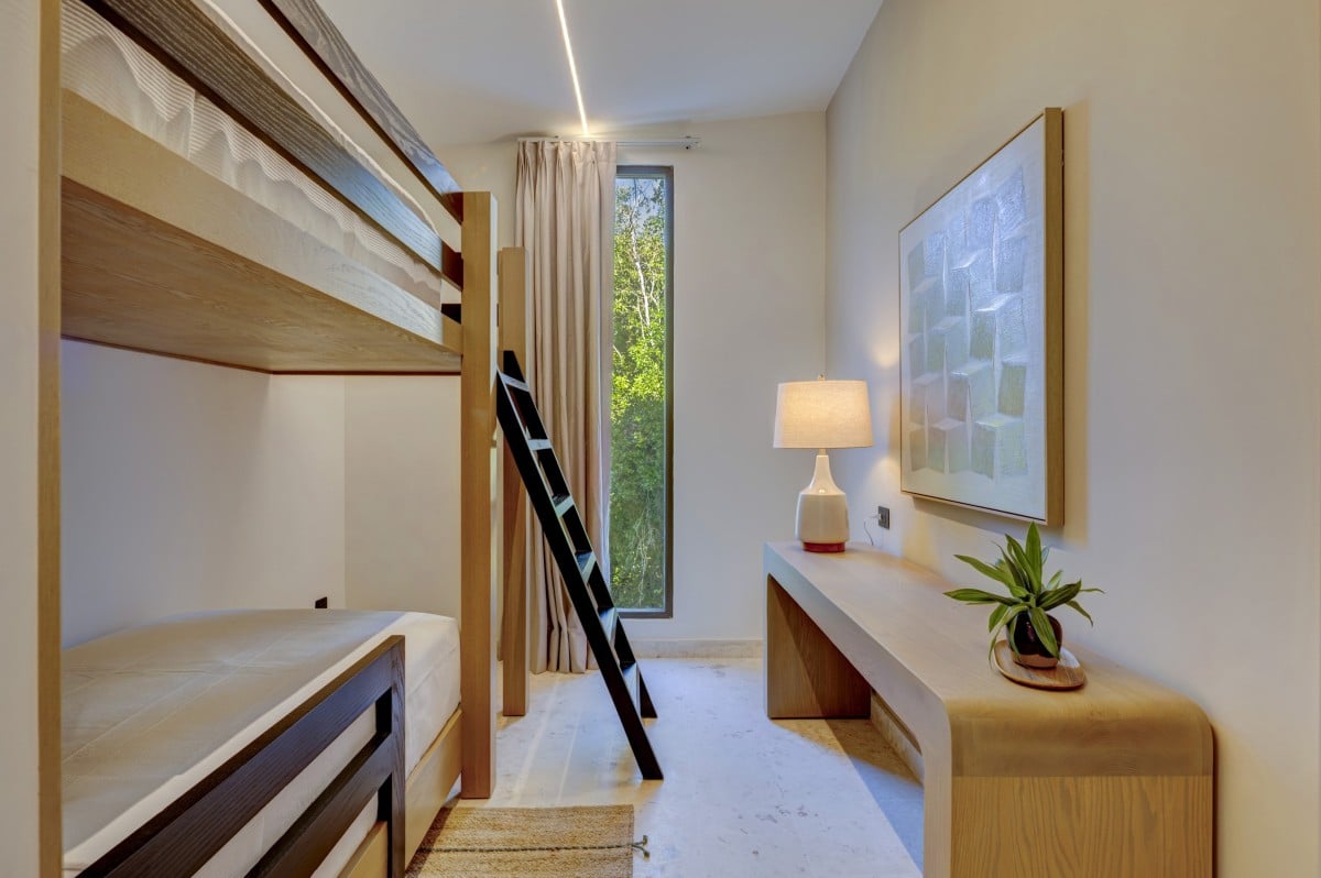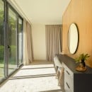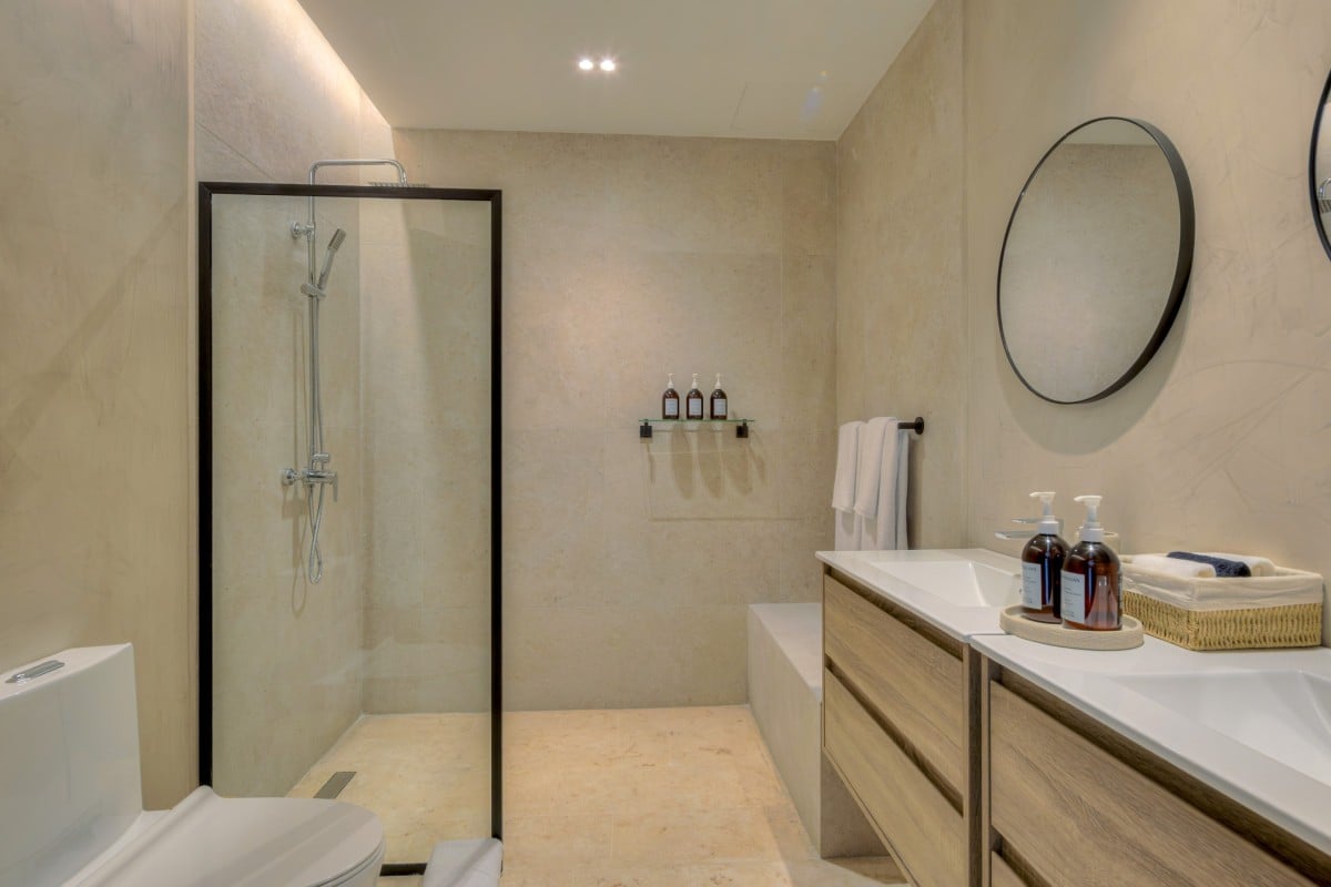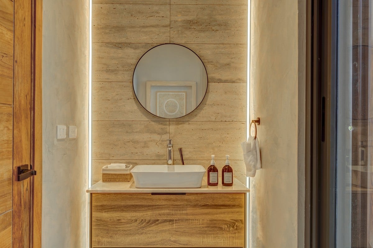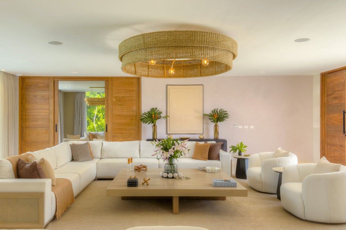 From the moment you enter, you are greeted by refined minimalism and a chic Caribbean ambiance. Expansive ceilings, open flow layouts, and wide glass doors create a seamless transition between the villa’s stylish interiors and the lush natural surroundings. Earthy textures, natural wood finishes, and soft airy tones set the stage for a laid back yet polished tropical lifestyle.