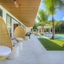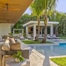 Step outside to discover a generous private yard designed for relaxation, entertainment, and family enjoyment. An inviting infinity pool, sunlit terrace, swaying palms, and manicured greenery come together to form a tranquil outdoor oasis perfect for gatherings or peaceful downtime.