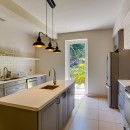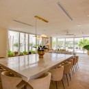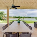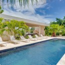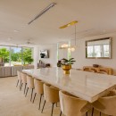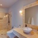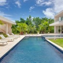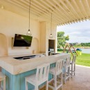 Designed with contemporary elegance, the villa boasts an expansive living room with plush couches and a refined wooden dining table that seats 18. The modern, fully equipped kitchen, complete with a sleek island, invites culinary adventures, while the spacious outdoor area is perfect for gatherings. This space includes a wet bar, TV, sitting area, BBQ, and a large dining table for alfresco meals under the Caribbean sky.