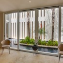 The outdoor amenities are equally impressive, with a sparkling pool featuring a unique fountain that gracefully winds through the living room, entrance, and several bedrooms, creating a soothing water-inspired atmosphere. The expansive garden opens to breathtaking lake views and includes kids' hammocks for playful or relaxing afternoons.