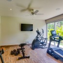 For wellness enthusiasts, the villa offers a state-of-the-art gym and a rooftop hot tub with panoramic views of the lake, providing an ideal setting for relaxation or exercise.