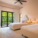 Bedroom 5: Second floor bedroom with two queen-size beds, A/C, WiFi, and en-suite bathroom with shower, vanity and wc. 2 guests maximum.