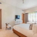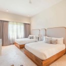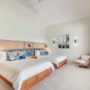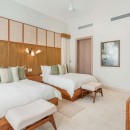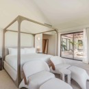 Bedroom 5: Second floor bedroom with two queen-size beds, ceiling fan, A/C, TV, WiFi, balcony, and en-suite bathroom with shower, vanity and WC. 2 guests maximum.