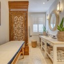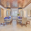 The villa’s nine bedrooms are spacious and designed for ultimate relaxation, featuring serene, modern decor. Each room includes an ensuite bathroom, premium furnishings, and stunning views of either the lush garden or the sparkling beach.