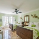 Bedroom 2: Bedroom with two double beds, ceiling fan, A/C, WiFi, TV, access to terrace, and en-suite bathroom with shower, double vanity and WC. 2 guests maximum.