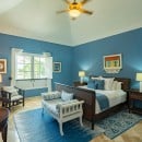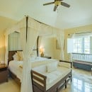 Bedroom 1: Master bedroom with a king-size bed, ceiling fan, A/C, WiFi, TV, safe, walk-in closet, and en-suite bathroom with shower, double vanity and WC. 2 guests maximum.