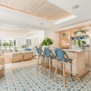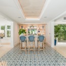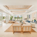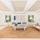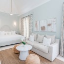 Inside, the villa welcomes guests with an open-concept living area filled with natural light. Stylishly furnished with plush sofas, armchairs, and a built-in bar, the space provides a warm, inviting setting to unwind and socialize. The design emphasizes both comfort and sophistication, ensuring guests feel at home from the moment they arrive.