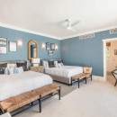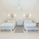 Bedroom 4: Second floor bedroom with two queen-size beds, ceiling fan, A/C, WiFi, and en-suite bathroom with shower, vanity and WC. 2 guests maximum.