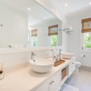 Each of the four bedrooms features its own en-suite bathroom and is thoughtfully appointed with either king-size or queen-size beds, high-quality linens, and plenty of closet space. The master suite is a standout, offering a king-size bed, a walk-in closet, and a luxurious en-suite bathroom complete with a Jacuzzi tub and separate shower.