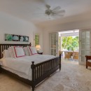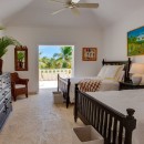 Bedroom 1: Master bedroom with a king-size bed, ceiling fan, A/C, TV, WiFi, pool view, access to the terrace, and en-suite bathroom with shower, vanity and WC. 2 guests maximum.