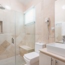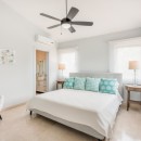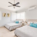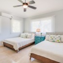 Bedroom 2: Ground floor bedroom with two queen-size beds, ceiling fan, A/C, TV, WiFi, and en-suite bathroom with shower, vanity and WC. 2 guests maximum.