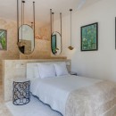 There are five bedrooms and 4.5 bathrooms in this home. The first bedroom offers a king-size bed, an en-suite bathroom with a shower and vanity, and a walk-in closet for your belongings. Two additional bedrooms have queen-size beds with en-suite bathrooms, while the fourth bedroom has two single beds, with own bathroom with a shower and vanity. and guest house with king size bed. The rooms are large, with extra seating in each, allowing you to wind down from a long day and take in the sunset from large windows that open out to the backyard.