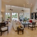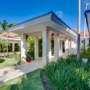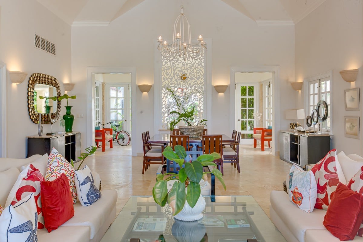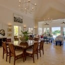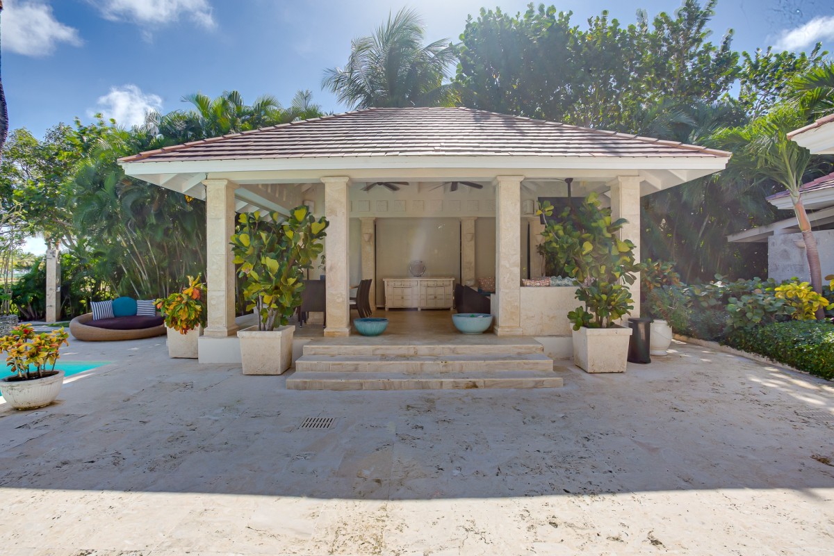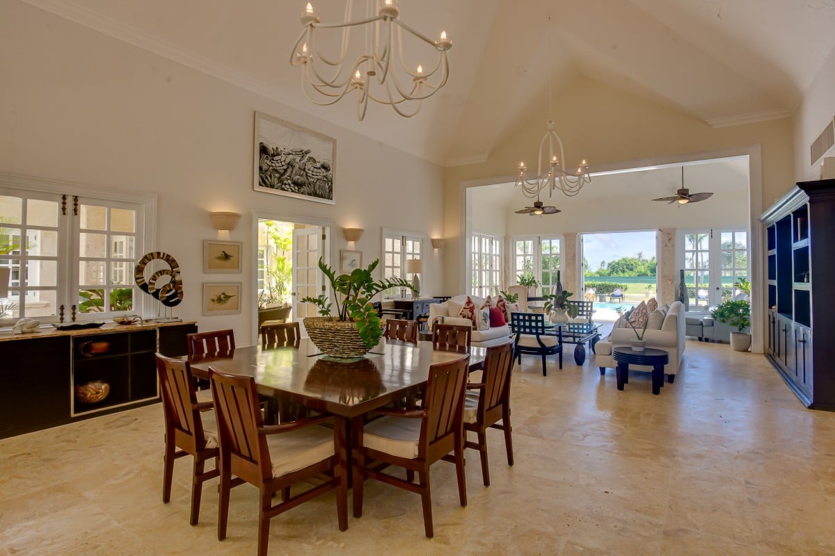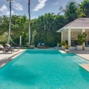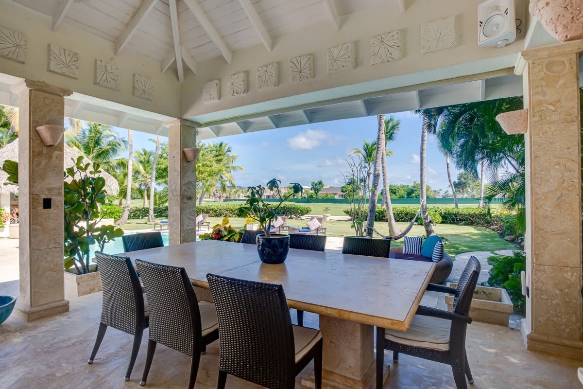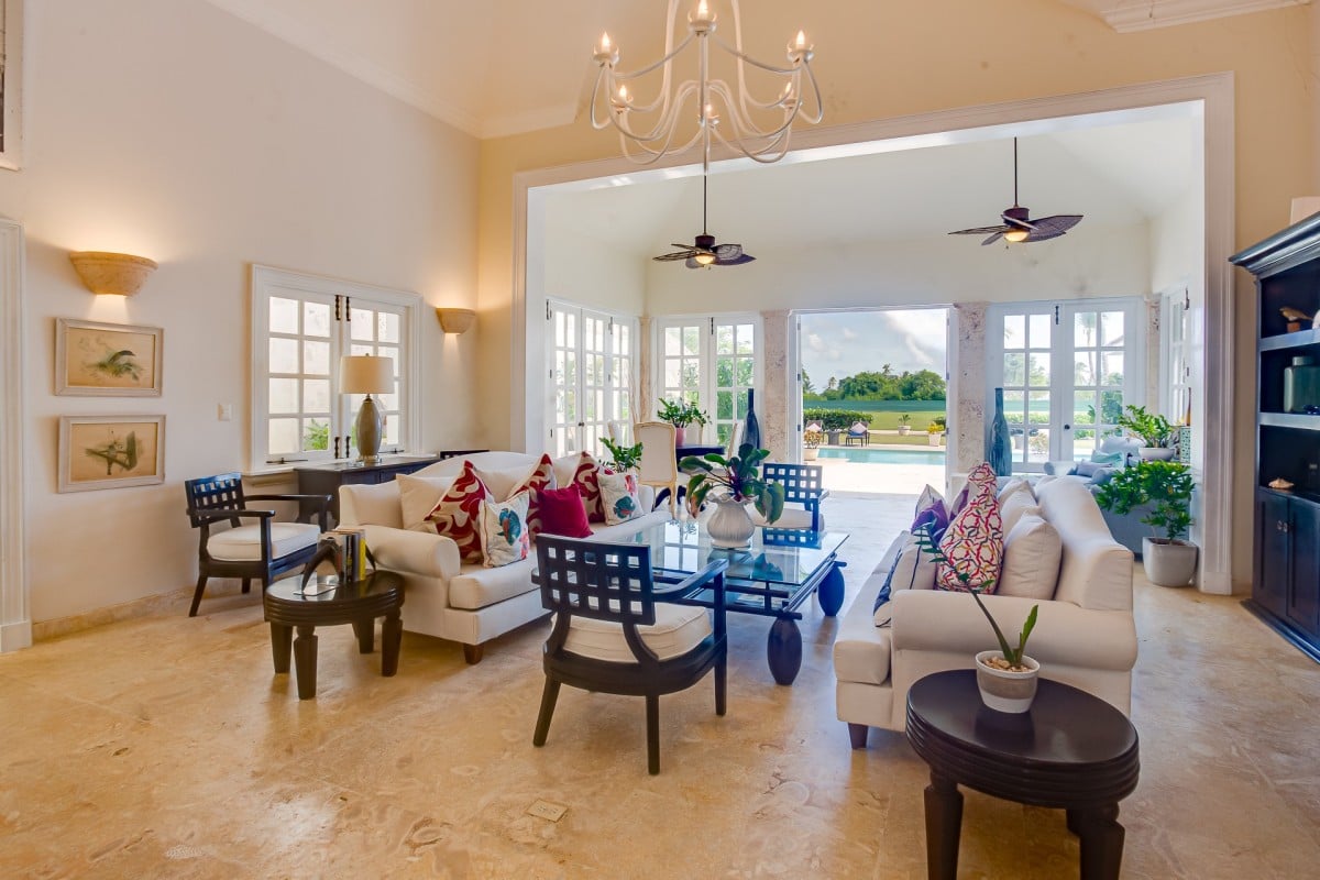 The villa has been designed with classic island style, but also with accents of a private estate. An array of buildings joins to offer you the very best range of lounging and dining spaces. Framing your gorgeous pool and looking out at one of the golf courses, the villa has a dining gazebo, sun deck, and verandah that features the al fresco living room, dining room, and breakfast bar. There is a full-sized sun bed alongside a classic hammock outdoors, and the exteriors feature the same attention to style and comfort.