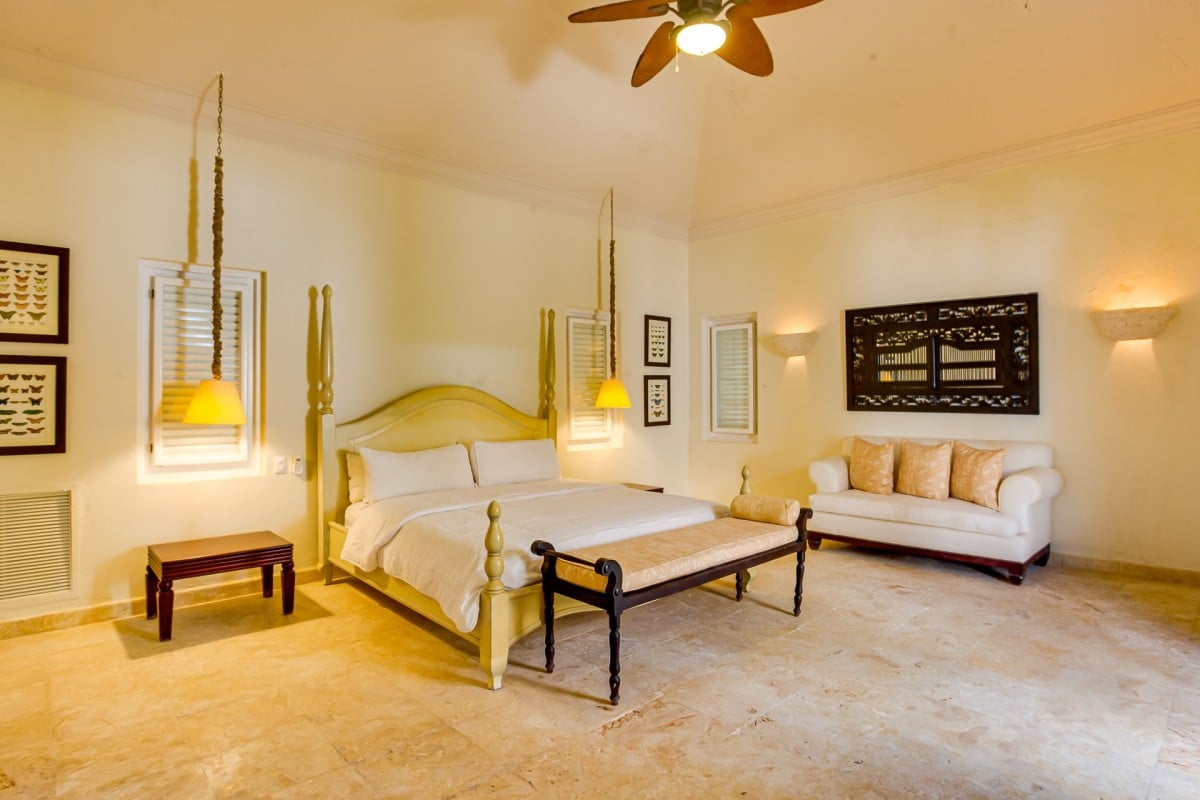 Bedroom 1: Second floor Master bedroom with a king-size bed, A/C, ceiling fan, WiFi, safe, and en-suite bathroom with shower, double vanity and WC. 2 guests maximum.