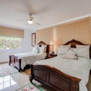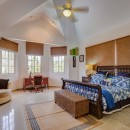 The four bedrooms maintain the cool and comfortable atmosphere and feature large beds, en suite bathrooms, televisions, and nice views of the garden and resort area.