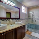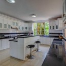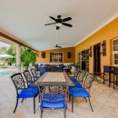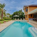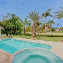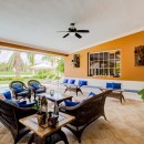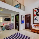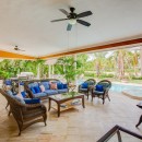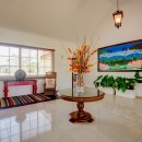 The villa is elegant in design and you can recognize this even before stepping inside. The columned entrance, the manicured garden, and the mature plantings give a hint at what guests can expect. Inside of the villa, a nautical palette of blue, white and sand gives the entire space a cool and open feeling that is carried all of the way through to the pool area.
