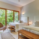 Bedroom 3: Ground floor bedroom with 2 queen-size beds, A/C, WiFi, access to the yard, and en-suite bathroom with shower, vanity and WC. 2 guests maximum.