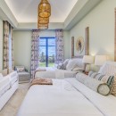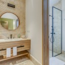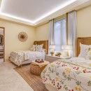 Bedroom 5: Ground floor bedroom with two queen-size beds, A/C, TV, WiFi, and en-suite bathroom with shower, vanity and WC. 2 guests maximum.