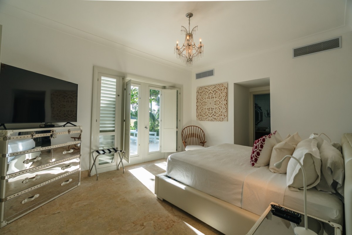 Bedroom 1: Master bedroom with a king-size bed, A/C, WiFi, TV, walk-in closet,  access to pool patio, and en-suite bathroom with shower, double vanity and WC. 2 guests maximum.