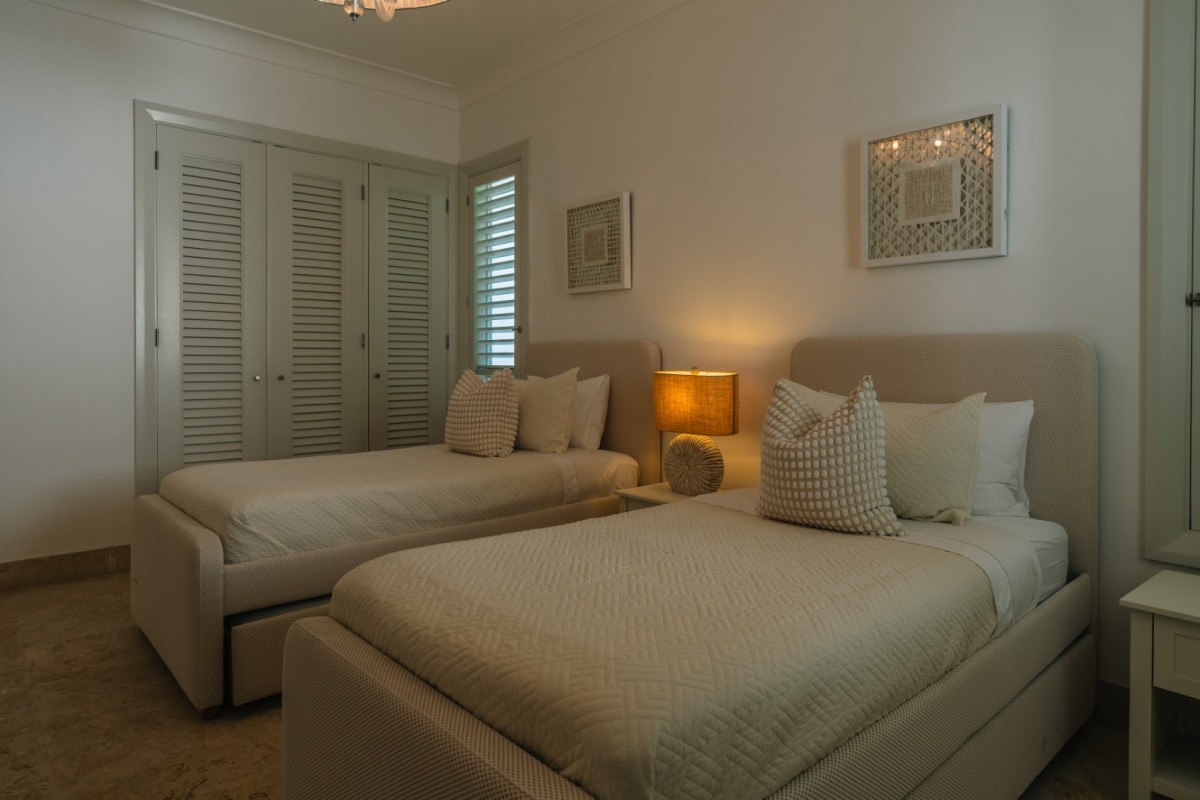 Bedroom 4: Bedroom with two single beds, A/C, TV, WiFi, and en-suite bathroom with shower, double vanity and WC. 2 guests maximum.