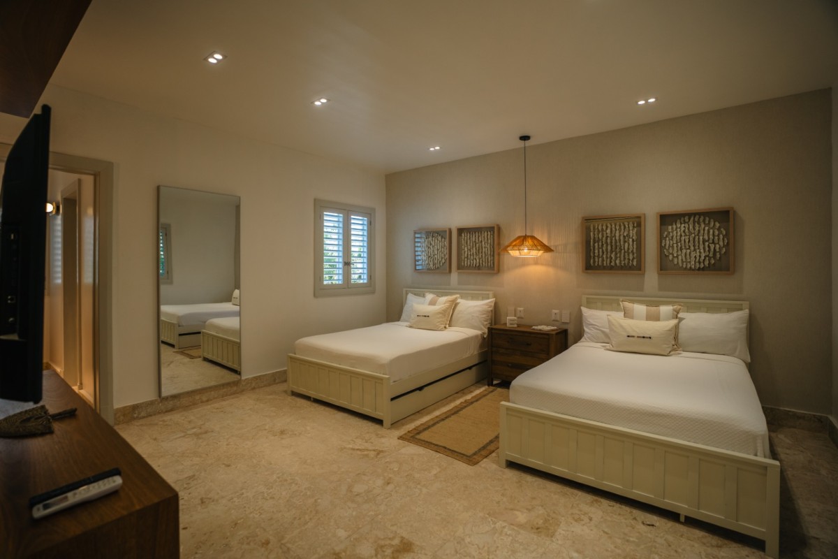 In addition to its stunning aesthetics, Villa Ona offers a host of premium services designed to elevate your stay. The villa is fully air-conditioned and comes with a dedicated team, including a housekeeper and cook, to ensure your every need is met. With 24-hour concierge service, cable and high-speed WiFi, and access to world-class amenities, comfort and convenience are always at hand. Guests also have exclusive access to two renowned golf courses, La Cana and Corales, as well as the pristine Playa Blanca and La Cana Beach Club, providing you with the perfect combination of relaxation and adventure during your stay.