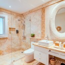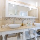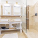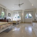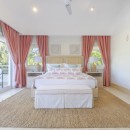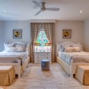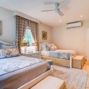 Bedroom 5: First floor bedroom with two queen-size beds, ceiling fan, A/C, TV, WiFi, and en-suite bathroom with shower, double vanity and WC. 2 guests maximum.