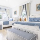 Bedroom 3: Second floor bedroom with two queen-size beds, ceiling fan, A/C, TV, WiFi, and en-suite bathroom with shower, double vanity and WC. 2 guests maximum.