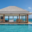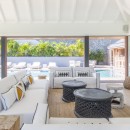 The seven-bedroom property has been lavishly designed and offers some of the most coveted views of Gustavia and St. Jean. Spread out over a stepped terrace, this amazing property features a beautiful wooden pool terrace in a central courtyard. Surrounding it are pavilion-like structures that house the formal dining area and shared living room, outdoor bar, and lounge areas. The seventh bedroom, however, is in a separate cottage adjacent to the villa, and offers a private bath and living room.