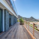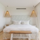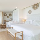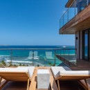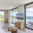 The property also features garden areas on several levels as well. Wrap around decks replete with loungers and dining areas, balconies, and private bedroom entrances ensure that everyone enjoys views of the sea and the surrounding landscape. The bedrooms are al en suite and come with large beds, top of the line technology, and clean and relaxing decor. Each features sliding glass doors to a private terrace or lounge.