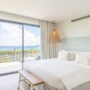 Bedroom 7: Bedroom with a queen-size bed, A/C, TV, French and US satellite,  safe, ocean view and en-suite bathroom with outside shower, vanity and wc. 2 guests maximum.