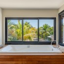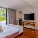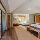 The shared living spaces of the Villa K are also a dream of spacious and thoughtful design with an open floor plan that guarantees maximum enjoyment of the breezes and scenery while also flowing fluidly into one another. The large gourmet kitchen faces out to the al fresco dining area or in to the ample living room. This features a large entertainment system and also opens out to the lovely deck area.