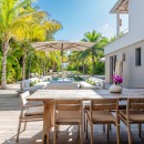 The Villa K has been designed with privacy and enjoyment of the Caribbean setting in mind. A flawless wooden terrace area with an elegant stretch of swimming pool serves as the focal point of the villa, and yet an abundance of shady or sunny lounging and dining areas dot the landscape too. Banquette seating, deck chairs or shady niches are easily found and enhance time spent relaxing alone or in groups.