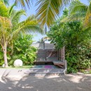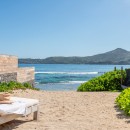 The four bedrooms all feature en suite baths, and the master bedroom is located on an upper level of the villa. Here guests can enjoy a Turkish bath, private terrace, and seating area. Another bedroom on the ground floor opens to the terrace, and the two remaining bedrooms are on the lower level. Each of the bedrooms has views of the beach and gardens.