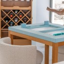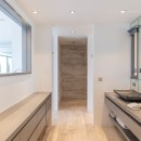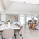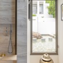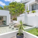 The interiors throughout have been decorated with a primarily black and white theme that gives them a clean and modern esthetic. The use of unique accents and large wall art makes this a fun and dynamic space throughout, and yet there is a tremendous sense of verdant growth surrounding each space.
