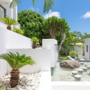 On the main living level is one bedroom suite. The next level up is the master suite, and the two remaining suites are the lower level. Three of the suites feature king beds, luxurious ensuite baths, complete entertainment systems and stunning views. The fifth bedroom is a children's suite with two double beds and bath. The bedroom level features an enormous terrace and the smaller swimming pool. Between the bedroom structures is an appealing water feature, and multiple outdoor spaces.