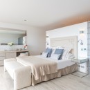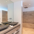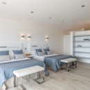 Bedroom 5: Lower floor bedroom with two double beds, A/C, TV, WiFi, safe, access to terrace with ocean view and en-suite bathroom with shower, vanity and WC. 2 guests maximum.