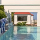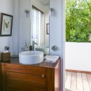 The unique pool terrace runs along the side of the villa, and is lined on one side by a lovely wooden deck furnished with roomy sun beds, and the lovely hills frame the other side. Swimmers pass beneath arches as they make their way from one end to the other, and emerge into the enormous outdoor lounge. Beneath a massive portico, it features Caribbean-influenced furnishings, an al fresco dining area and access to the gardens.