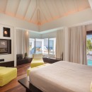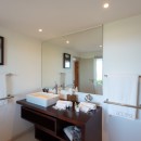 Each of the bedrooms is a destination too, with high ceilings, inspiring design and décor and views of the sea or the grounds. The master suite features a separate sitting area and dressing room. The remaining suites from king to queen, and each is equipped with high-end electronics. Some open to private gardens, feature unique elements such as locally sourced wooden floors or four-poster beds with mosquito netting, and one is in a separate studio on the lower level of the villa.